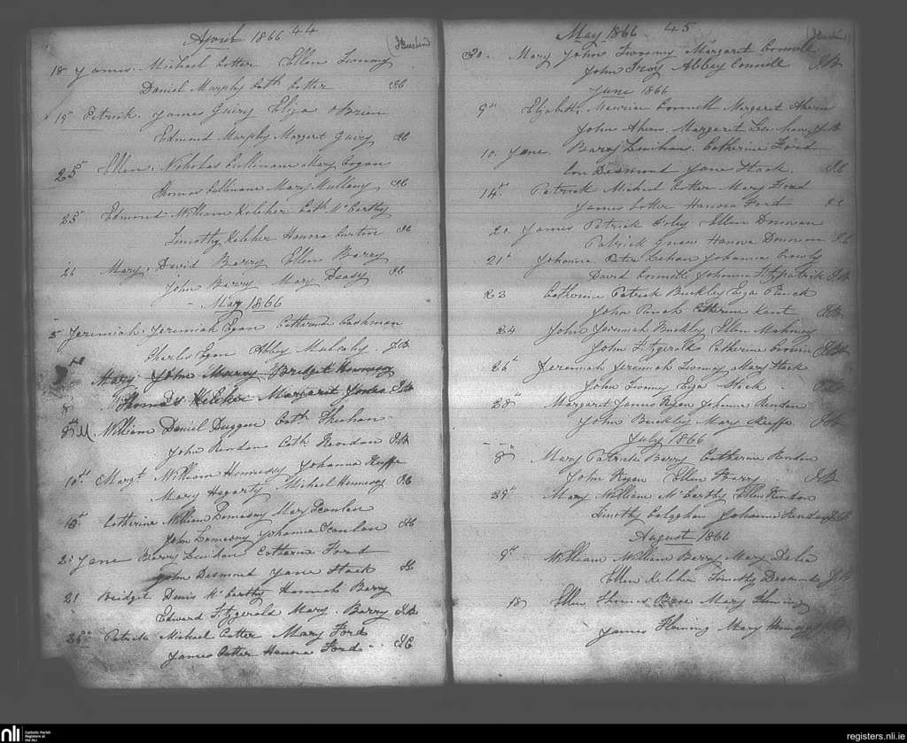 Lisgoold; County of Cork; Diocese of Cloyne. Baptisms, Marriages, Apr. 1866 to Aug. 1866