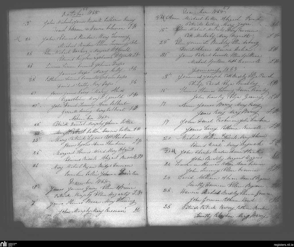 Lisgoold; County of Cork; Diocese of Cloyne. Baptisms, Marriages, Oct. 1868 to Jan. 1869