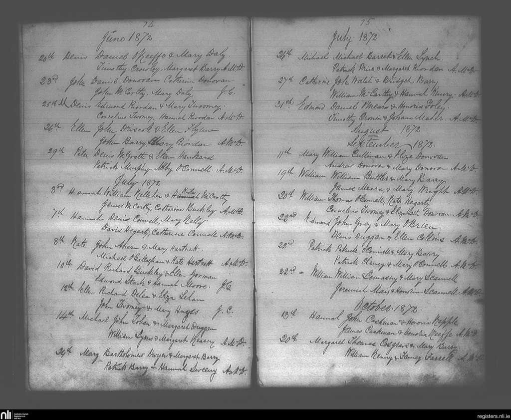 Lisgoold; County of Cork; Diocese of Cloyne. Baptisms, Marriages, June 1872 to Oct. 1872