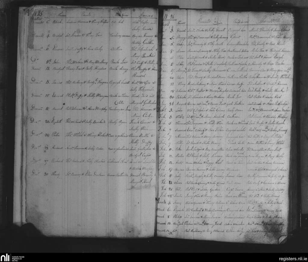 Kilglass; County of Sligo; Diocese of Killala. Baptisms, Dec. 1825 to Mar. 1826