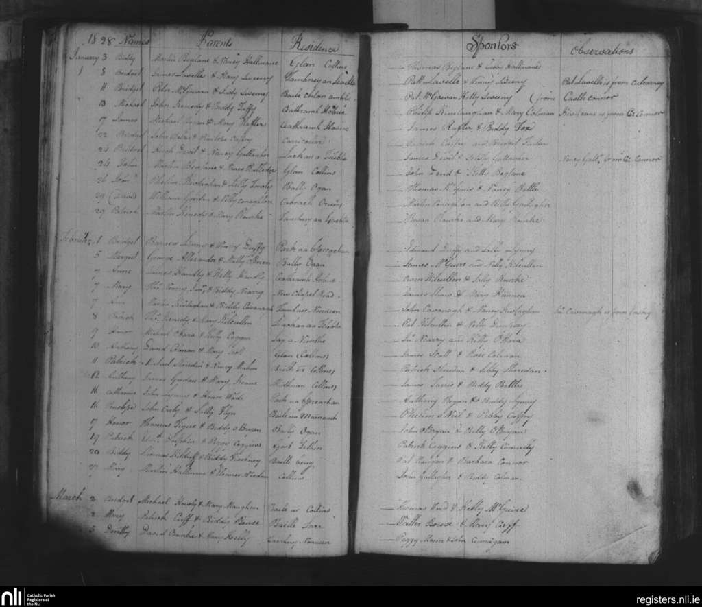 Kilglass; County of Sligo; Diocese of Killala. Baptisms, Jan. 1828 to Mar. 1828