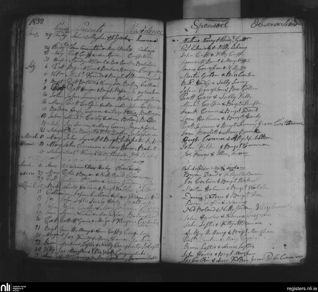 Kilglass; County of Sligo; Diocese of Killala. Baptisms, Jan. 1832 to May 1832