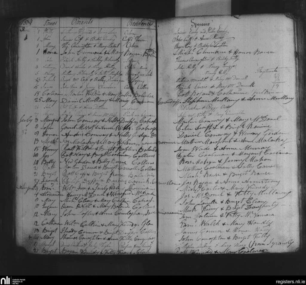 Kilglass; County of Sligo; Diocese of Killala. Baptisms, June 1834 to Aug. 1834