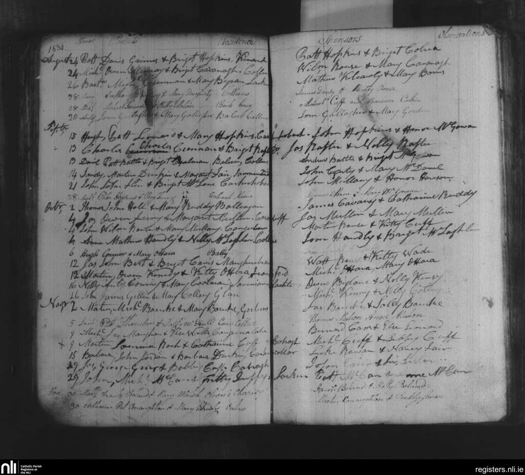 Kilglass; County of Sligo; Diocese of Killala. Baptisms, Aug. 1834 to Nov. 1834