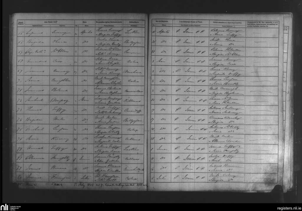 Kilglass; County of Sligo; Diocese of Killala. Baptisms, Jan. 1874 to Mar. 1874