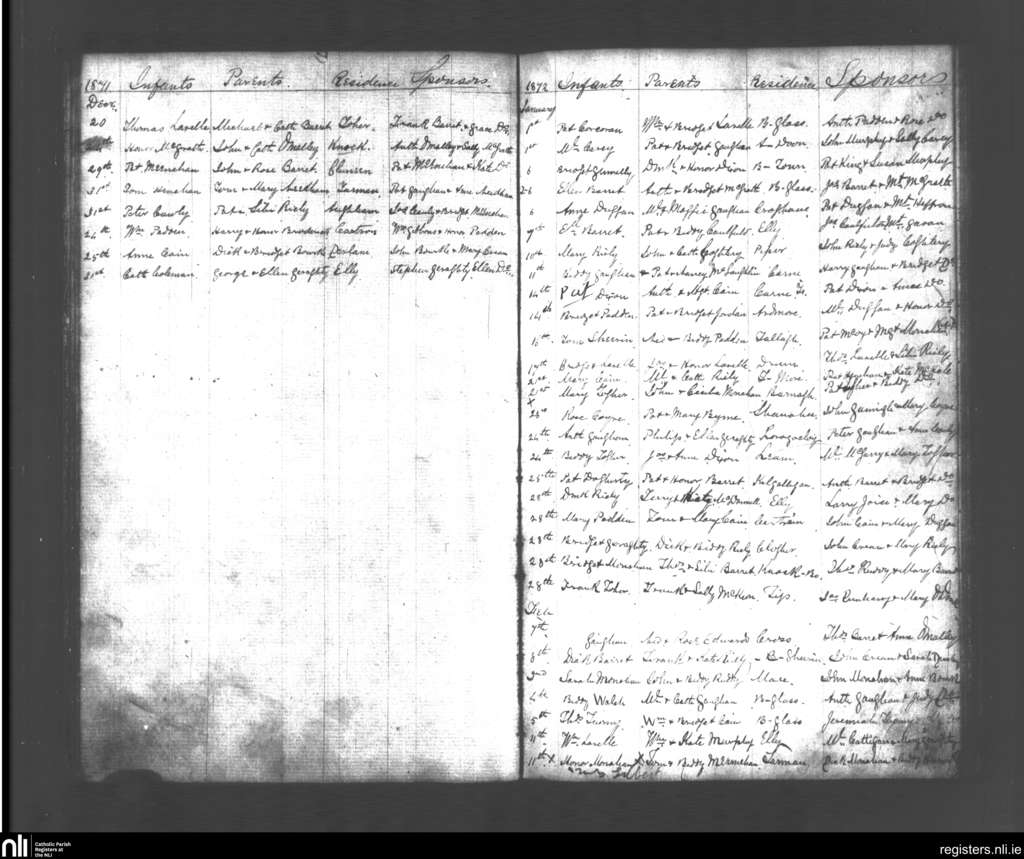 Kilmore Erris; County of Mayo; Diocese of Killala. Baptisms, Dec. 1871 to Feb. 1872