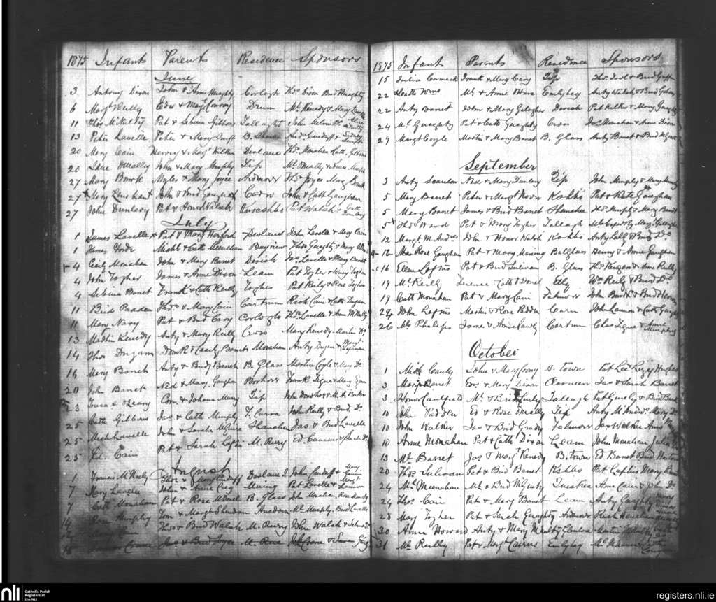 Kilmore Erris; County of Mayo; Diocese of Killala. Baptisms, June 1875 to Oct. 1875
