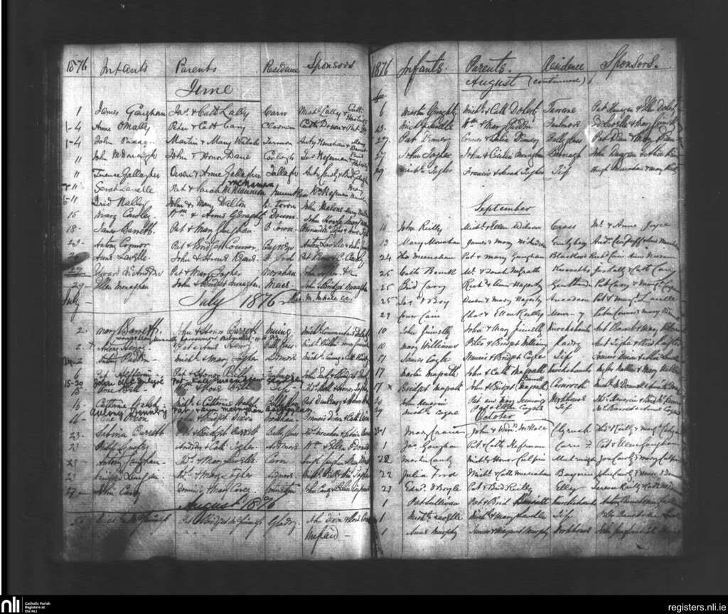 Kilmore Erris; County of Mayo; Diocese of Killala. Baptisms, June 1876 to Oct. 1876