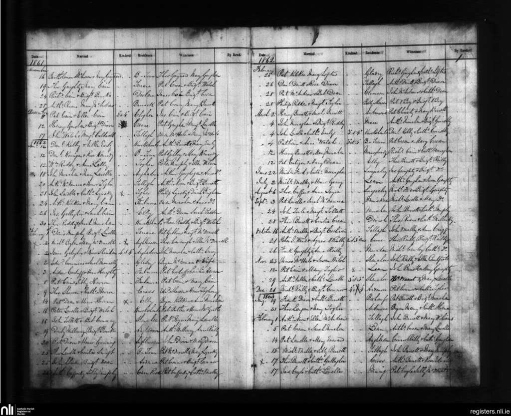 Kilmore Erris; County of Mayo; Diocese of Killala. Marriages, Nov. 1861 to Feb. 1863