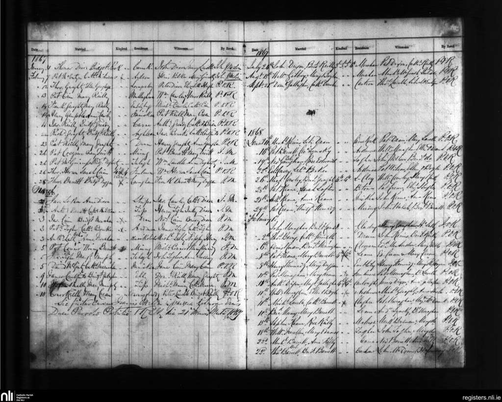 Kilmore Erris; County of Mayo; Diocese of Killala. Marriages, Jan. 1867 to Feb. 1868