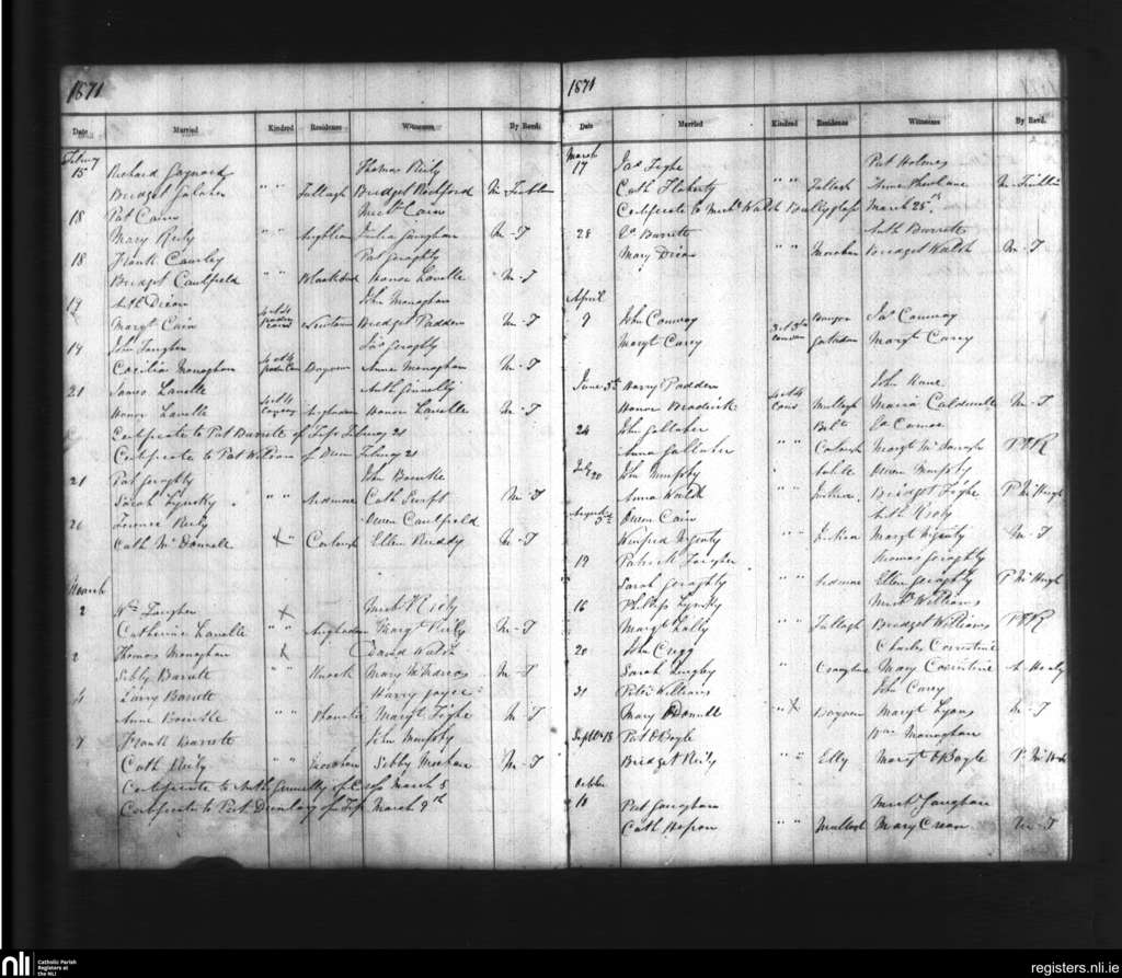 Kilmore Erris; County of Mayo; Diocese of Killala. Marriages, Feb. 1871 to Oct. 1871
