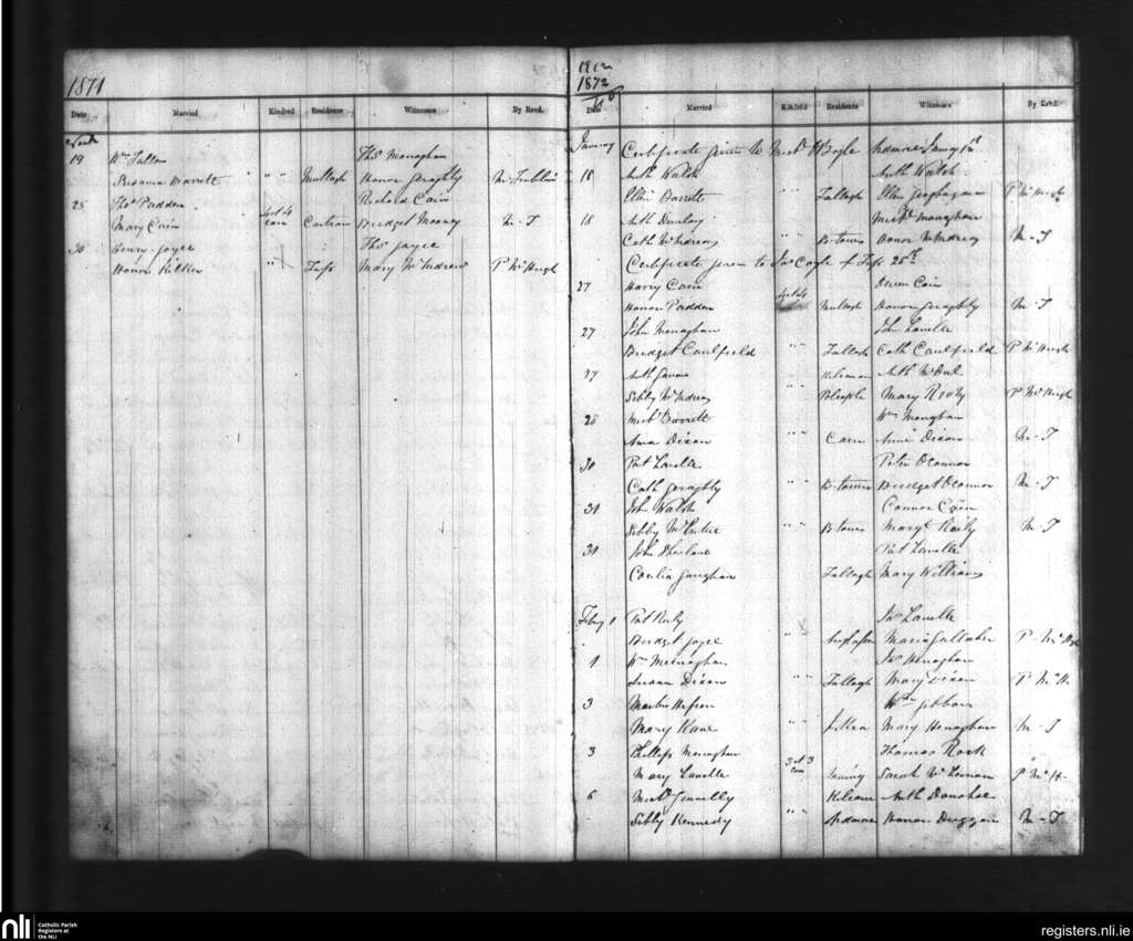 Kilmore Erris; County of Mayo; Diocese of Killala. Marriages, Nov. 1871 to Feb. 1872