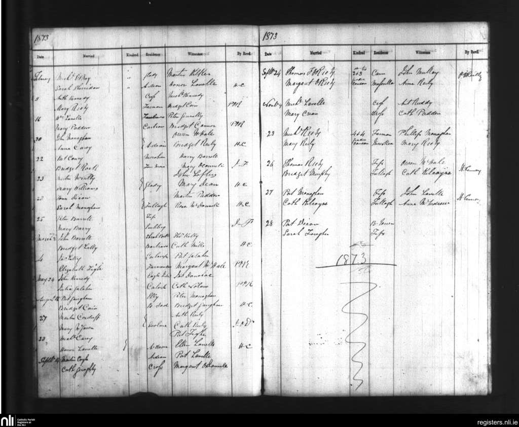 Kilmore Erris; County of Mayo; Diocese of Killala. Marriages, Feb. 1873 to Nov. 1873
