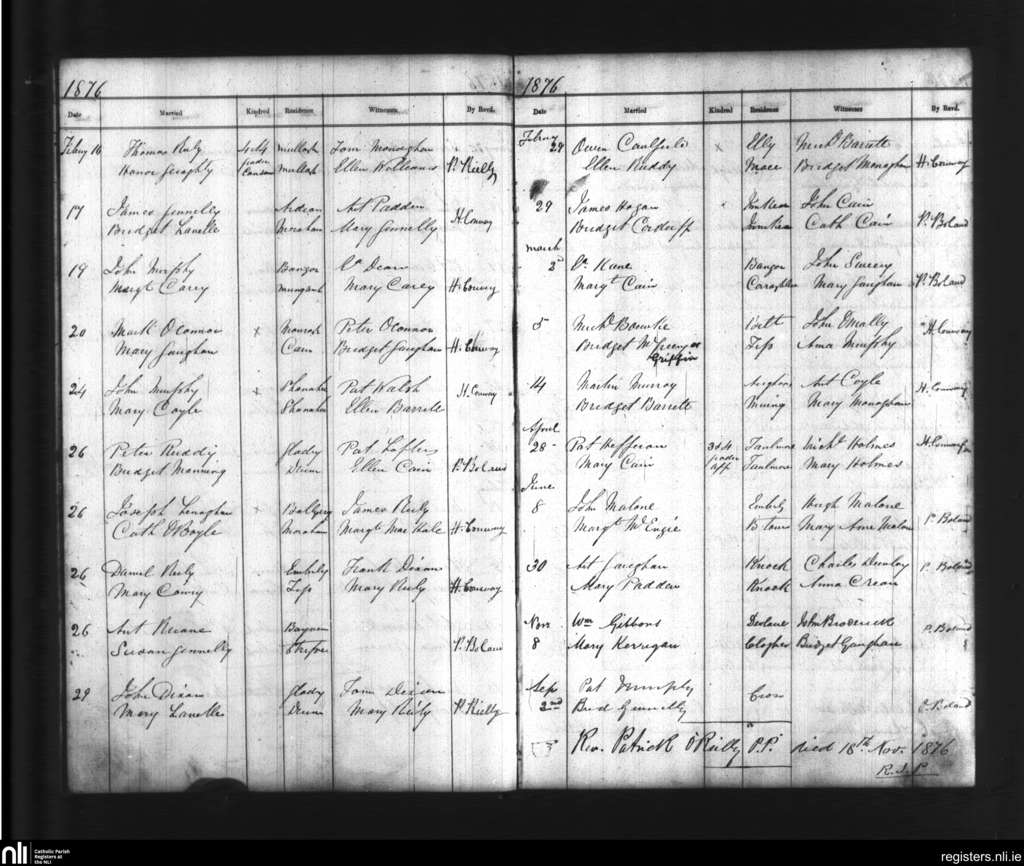 Kilmore Erris; County of Mayo; Diocese of Killala. Marriages, Feb. 1876 to Nov. 1876