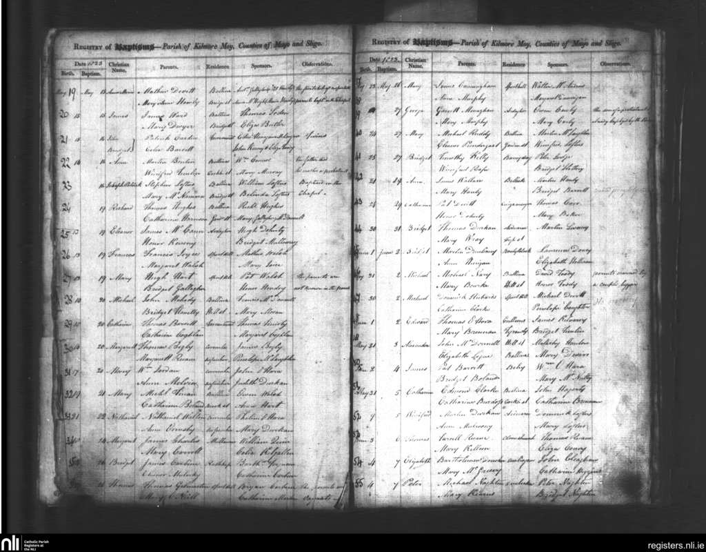Kilmoremoy; County of Mayo, Sligo; Diocese of Killala. Baptisms, May 1823 to June 1823