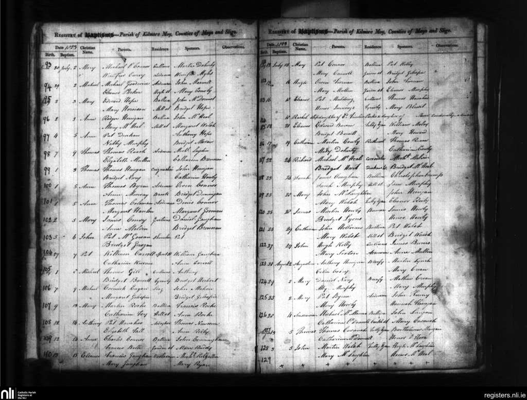 Kilmoremoy; County of Mayo, Sligo; Diocese of Killala. Baptisms, June 1823 to Aug. 1823