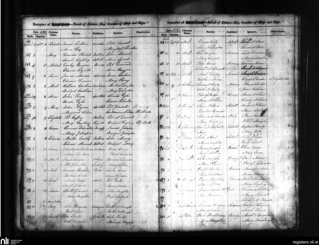 Kilmoremoy; County of Mayo, Sligo; Diocese of Killala. Baptisms, Aug. 1823 to Oct. 1823