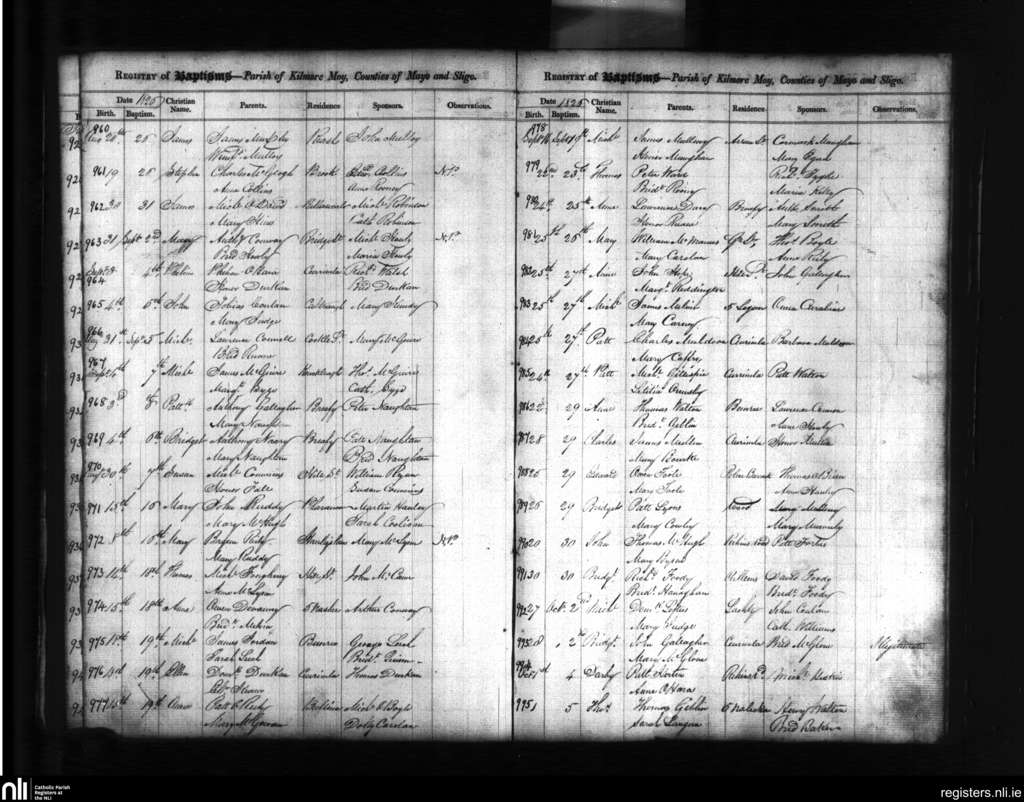 Kilmoremoy; County of Mayo, Sligo; Diocese of Killala. Baptisms, Aug. 1826 to Oct. 1826
