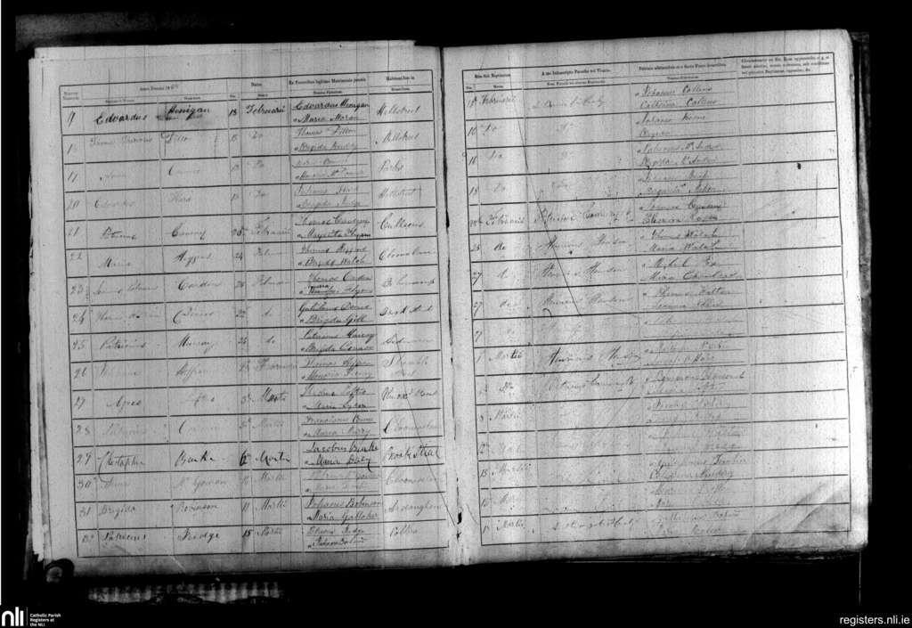 Kilmoremoy; County of Mayo, Sligo; Diocese of Killala. Baptisms, Feb. 1868 to Mar. 1868