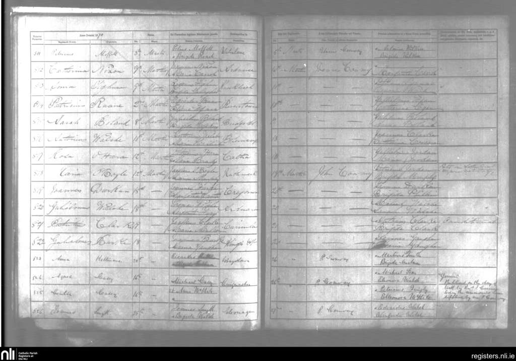 Kilmoremoy; County of Mayo, Sligo; Diocese of Killala. Baptisms, Mar. 1870