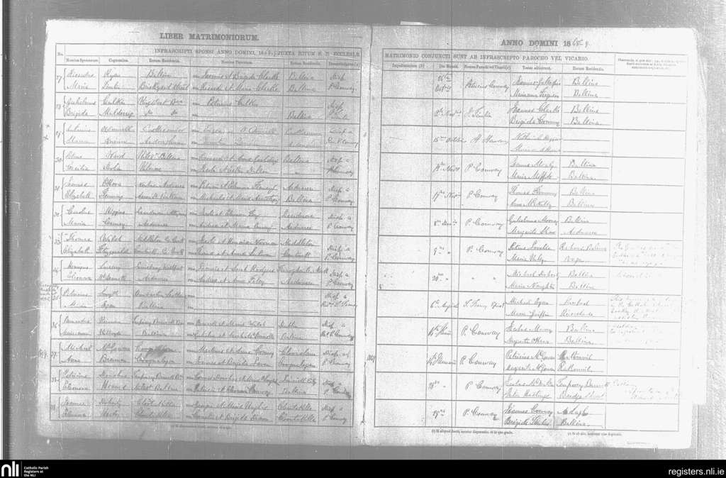 Kilmoremoy; County of Mayo, Sligo; Diocese of Killala. Marriages, June 1868 to Jan. 1869