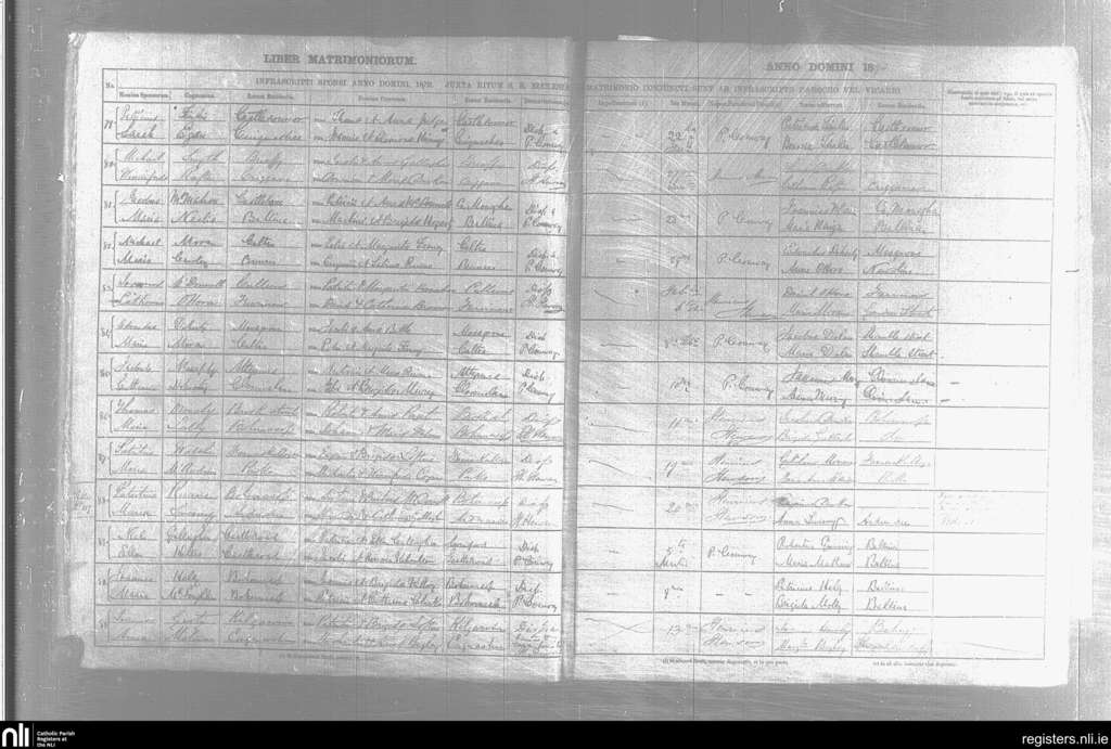 Kilmoremoy; County of Mayo, Sligo; Diocese of Killala. Marriages, Jan. 1870 to Mar. 1870
