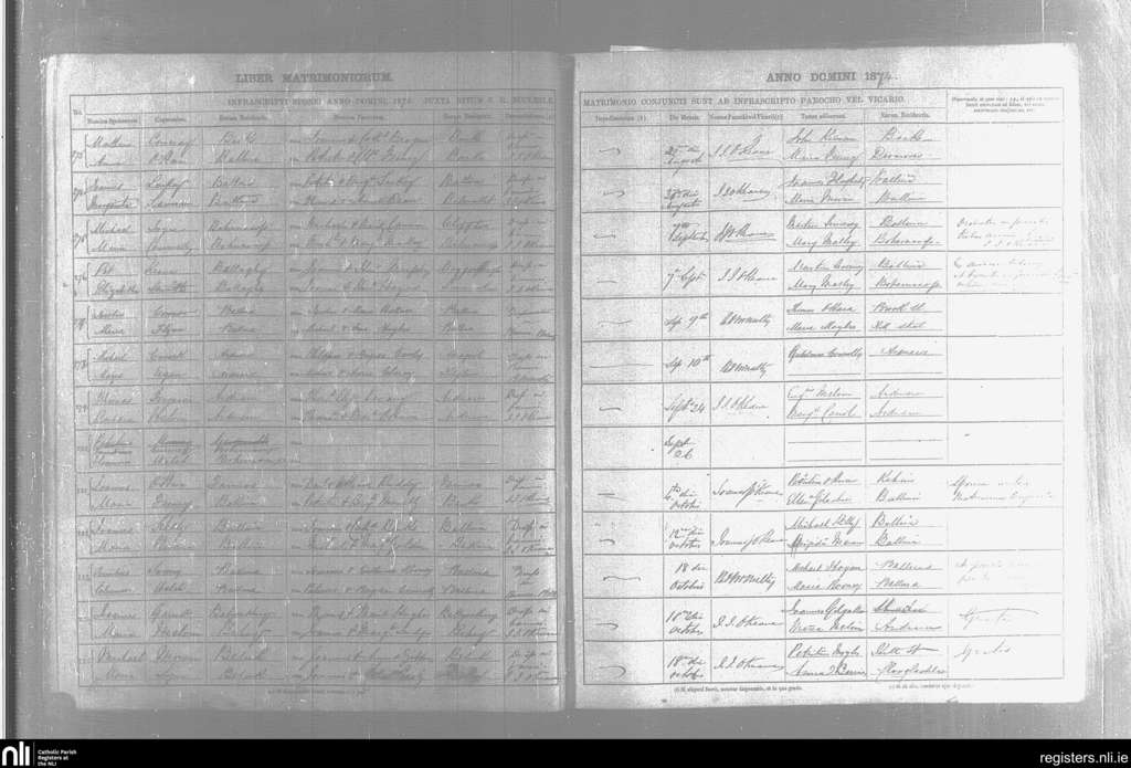 Kilmoremoy; County of Mayo, Sligo; Diocese of Killala. Marriages, Aug. 1874 to Oct. 1874