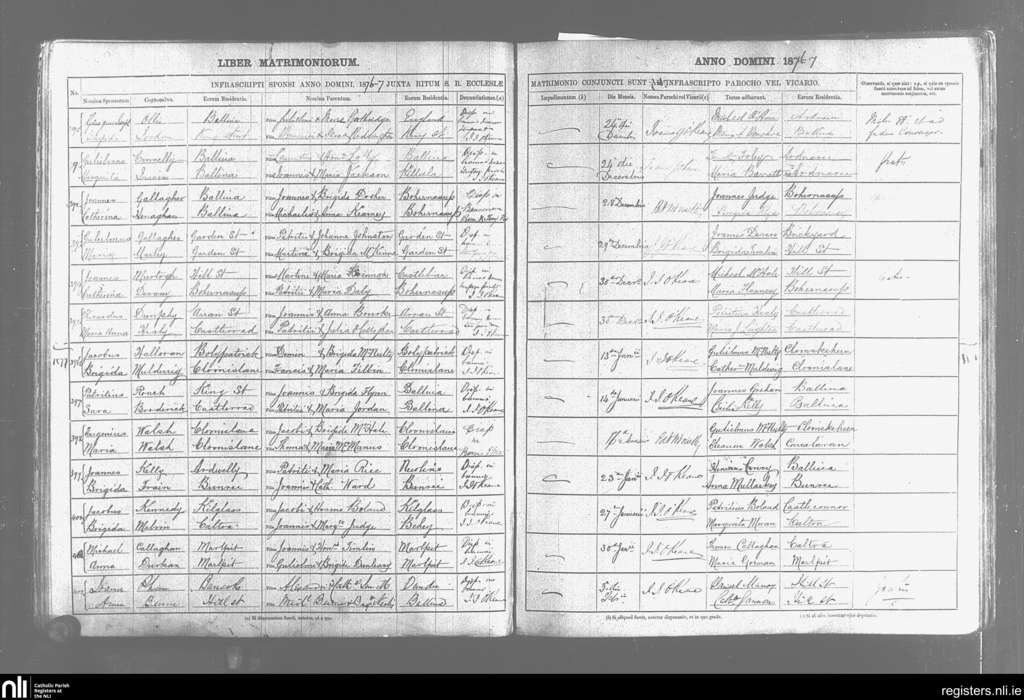 Kilmoremoy; County of Mayo, Sligo; Diocese of Killala. Marriages, Dec. 1876 to Feb. 1877
