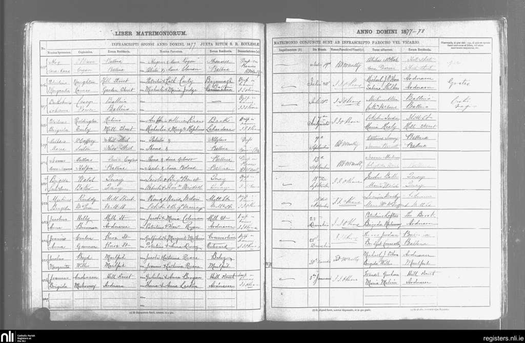 Kilmoremoy; County of Mayo, Sligo; Diocese of Killala. Marriages, July 1877 to Jan. 1878