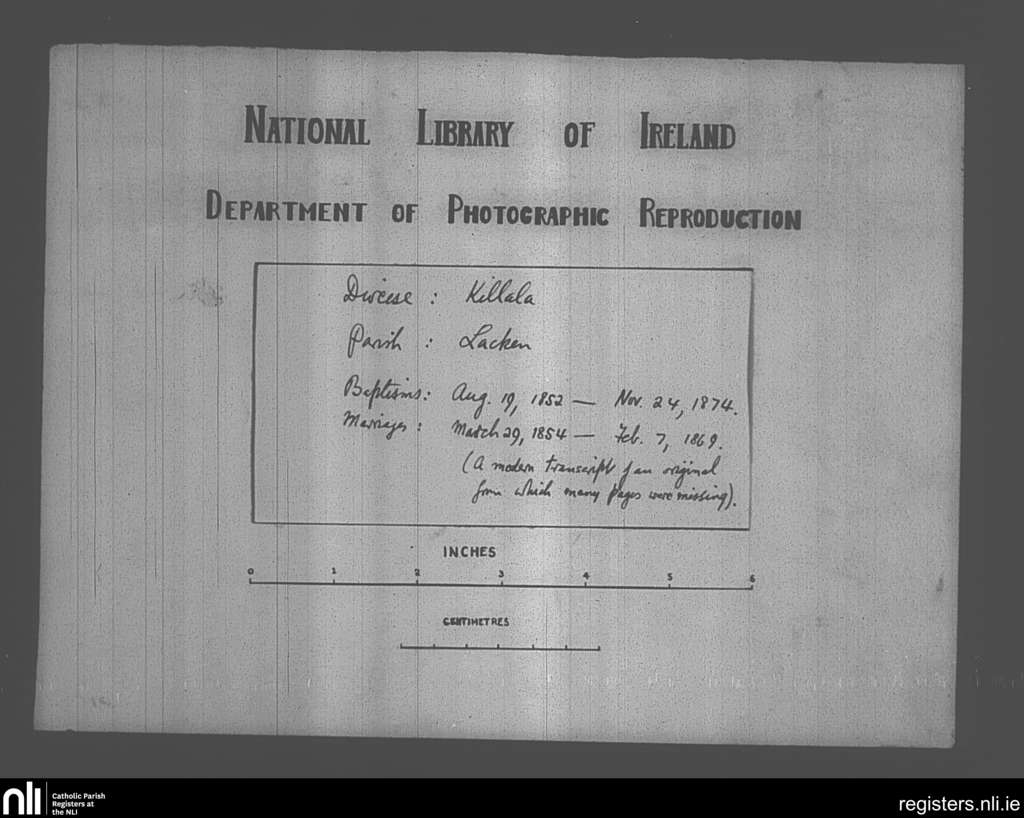 Lacken; County of Mayo; Diocese of Killala. Baptisms, Marriages