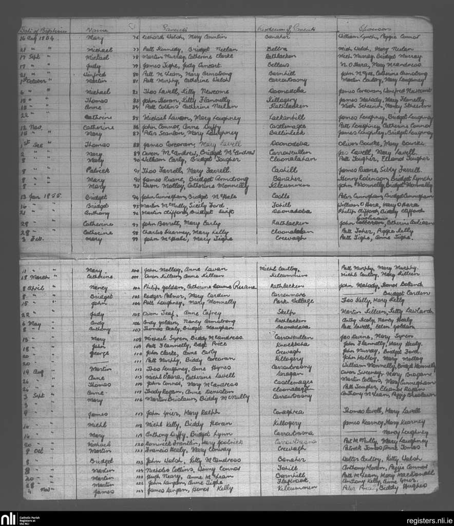 Lacken; County of Mayo; Diocese of Killala. Baptisms, Aug. 1854 to Nov. 1855