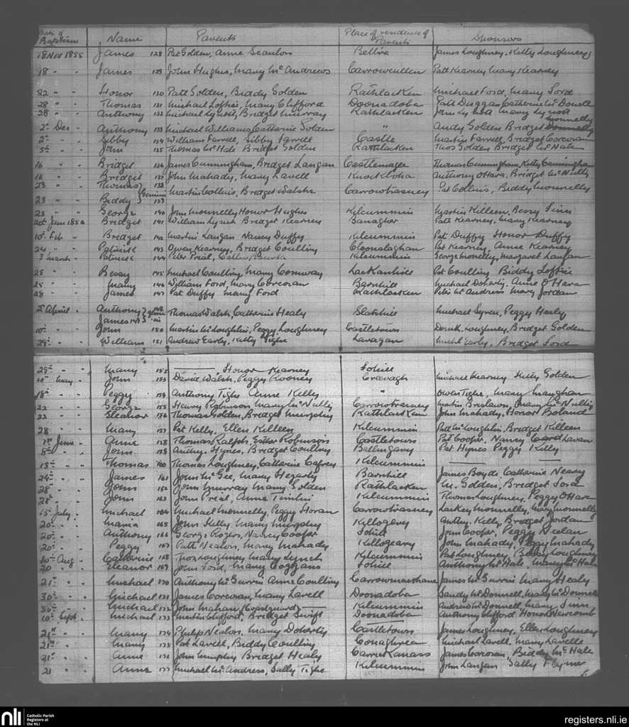 Lacken; County of Mayo; Diocese of Killala. Baptisms, Nov. 1855 to Sep. 1856