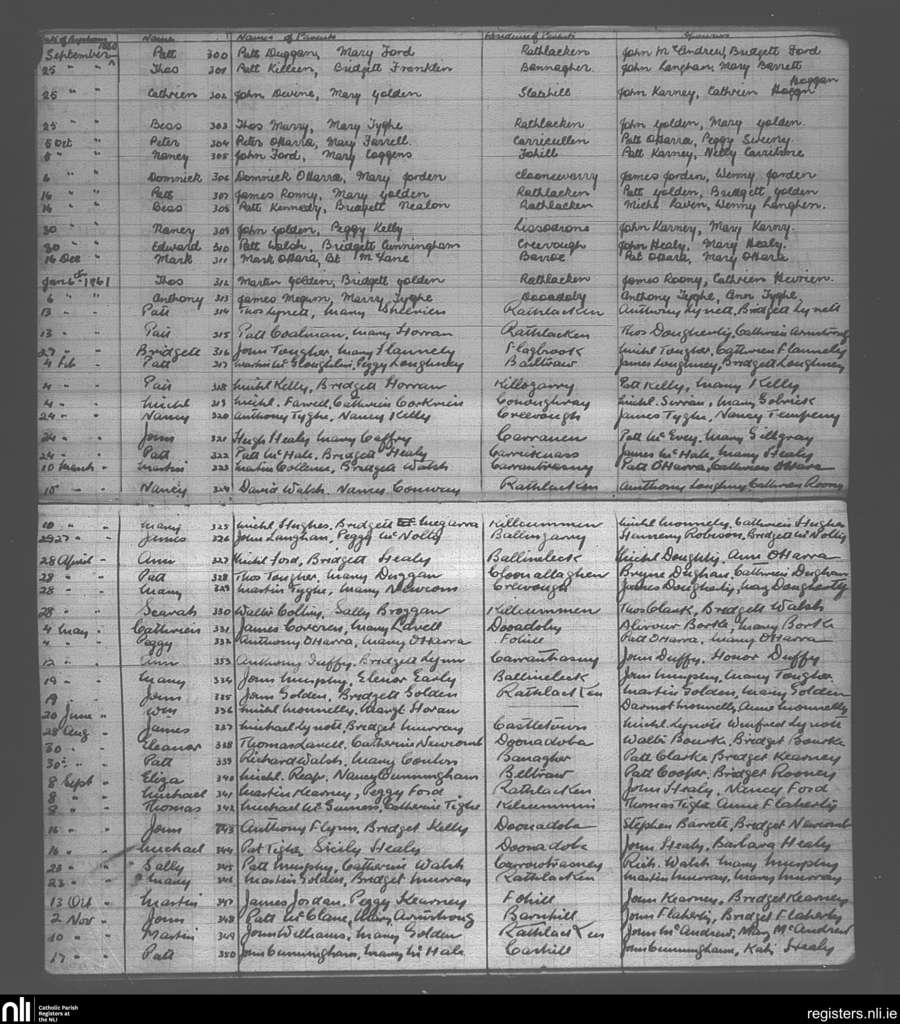 Lacken; County of Mayo; Diocese of Killala. Baptisms, Sep. 1860 to Nov. 1861
