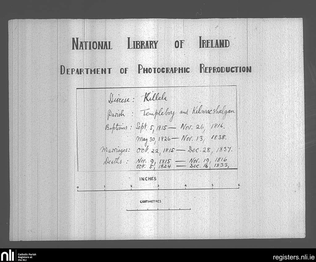 Templeboy; County of Sligo; Diocese of Killala. Baptisms, Marriages, Deaths