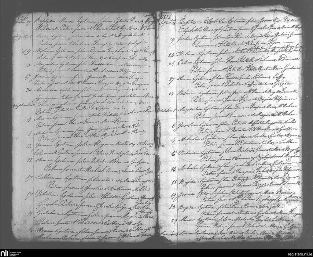Templeboy; County of Sligo; Diocese of Killala. Baptisms, July 1826 to Nov. 1826