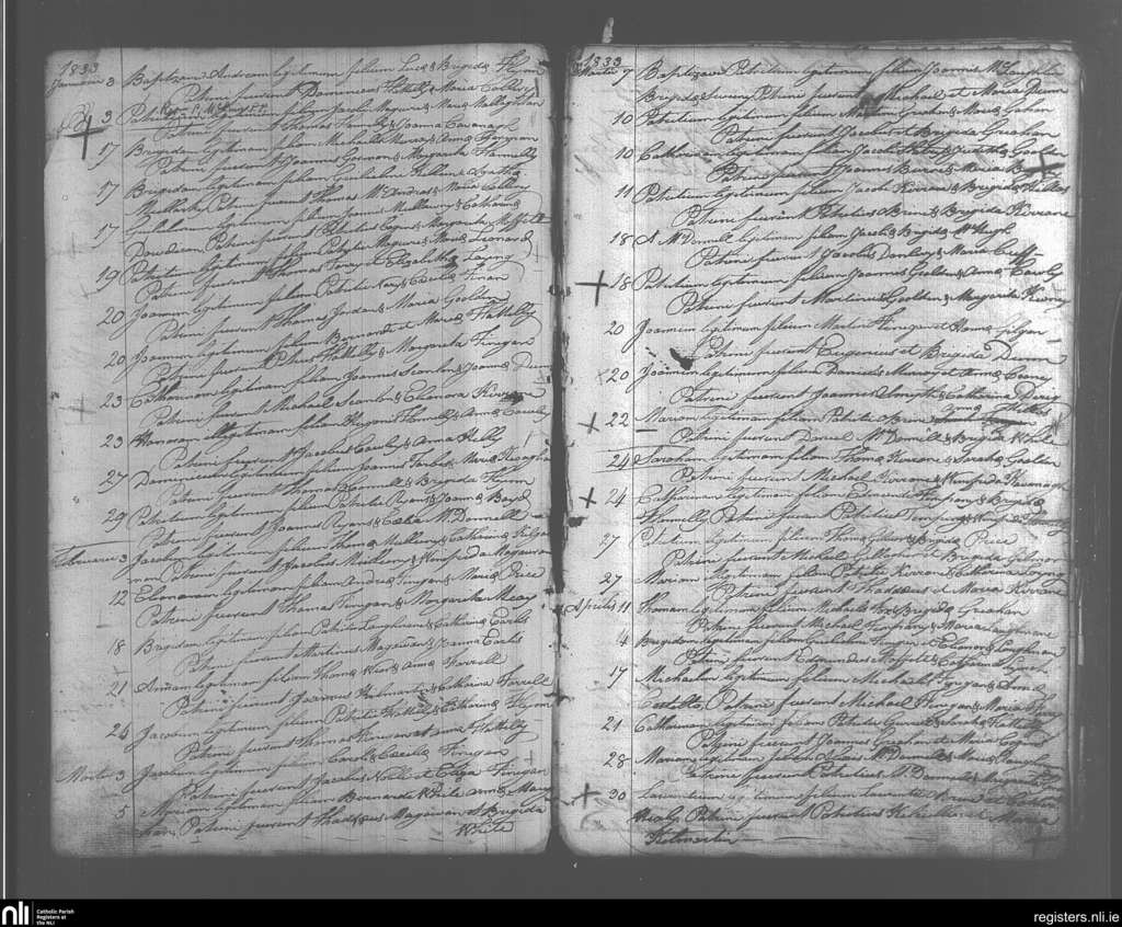 Templeboy; County of Sligo; Diocese of Killala. Baptisms, Jan. 1833 to Apr. 1833