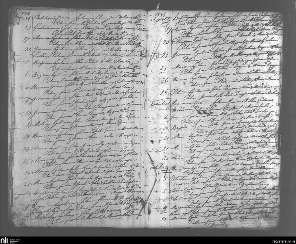 Templeboy; County of Sligo; Diocese of Killala. Baptisms, June 1834 to Oct. 1834
