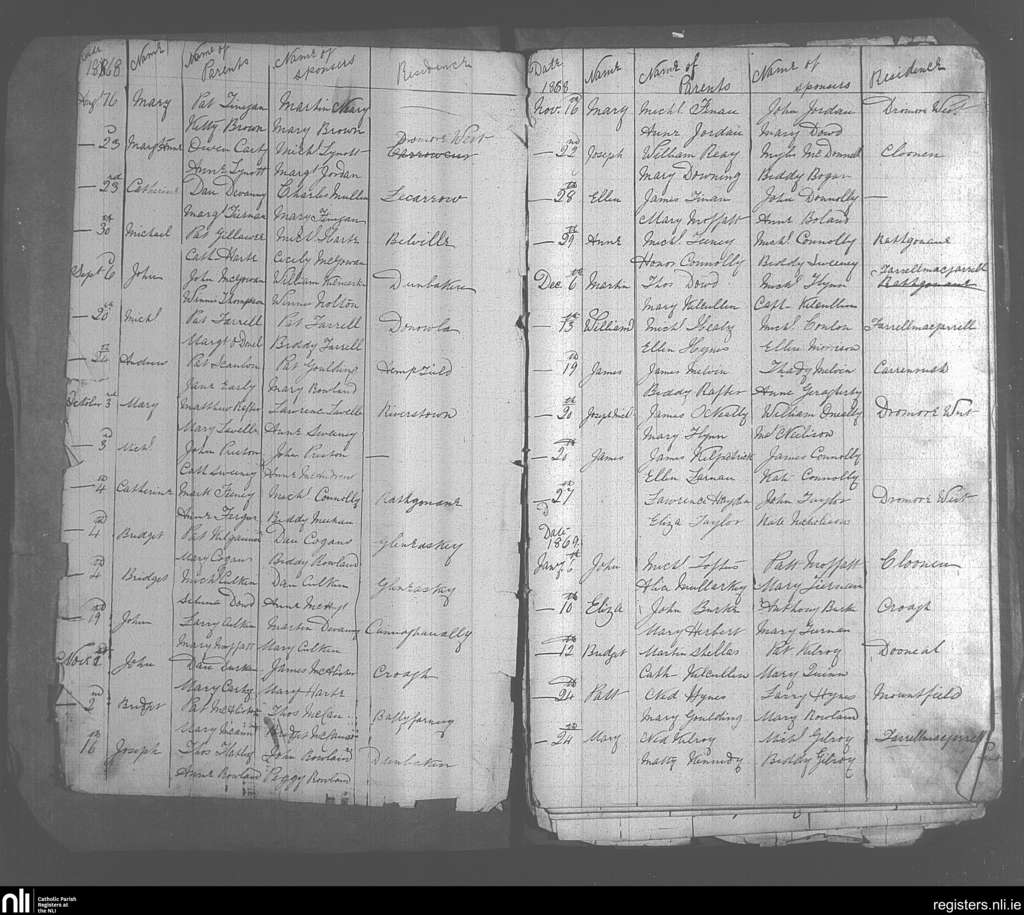 Templeboy; County of Sligo; Diocese of Killala. Baptisms, Aug. 1868 to Jan. 1869