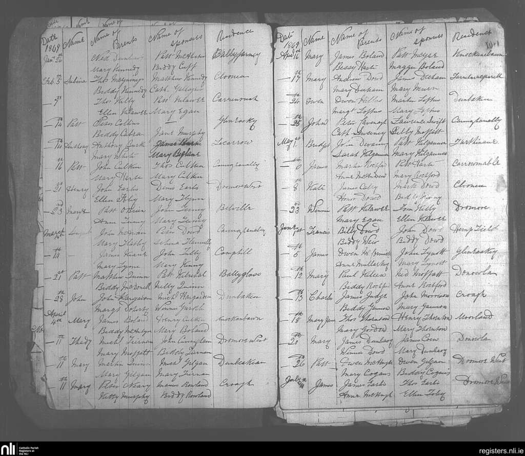 Templeboy; County of Sligo; Diocese of Killala. Baptisms, Jan. 1869 to July 1869