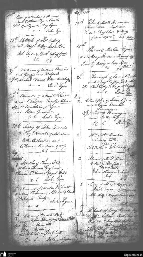 Castleconnell; County of Limerick, Tipperary; Diocese of Killaloe. Baptisms, Apr. 1850 to June 1850