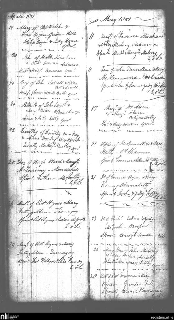 Castleconnell; County of Limerick, Tipperary; Diocese of Killaloe. Baptisms, Apr. 1851 to May 1851