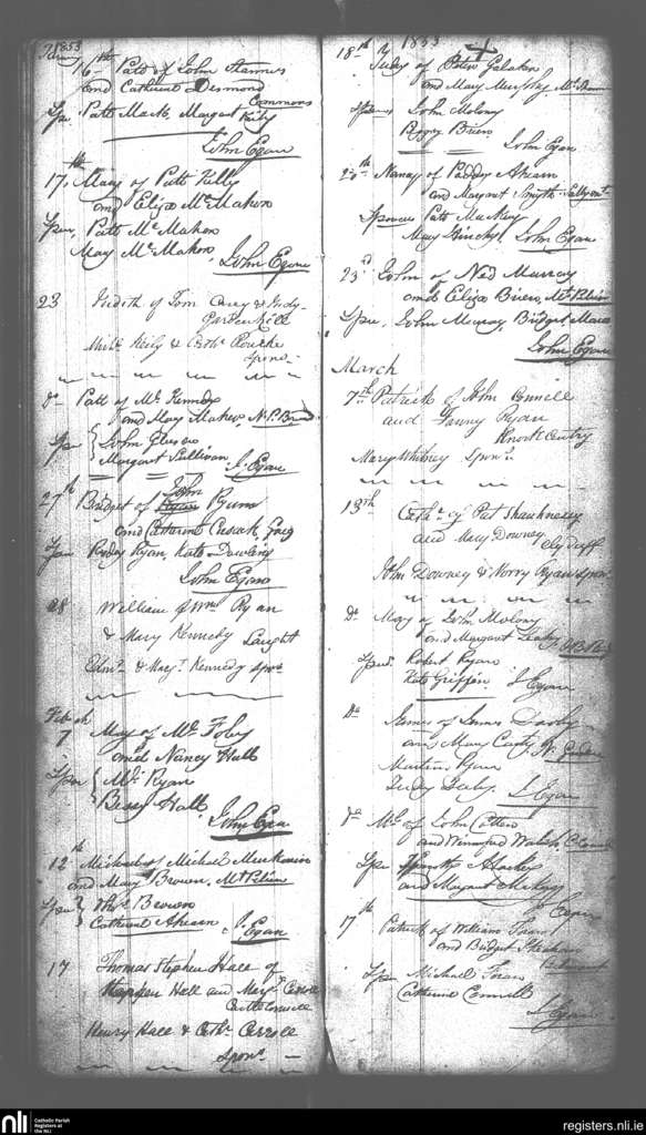Castleconnell; County of Limerick, Tipperary; Diocese of Killaloe. Baptisms, Jan. 1853 to Mar. 1853