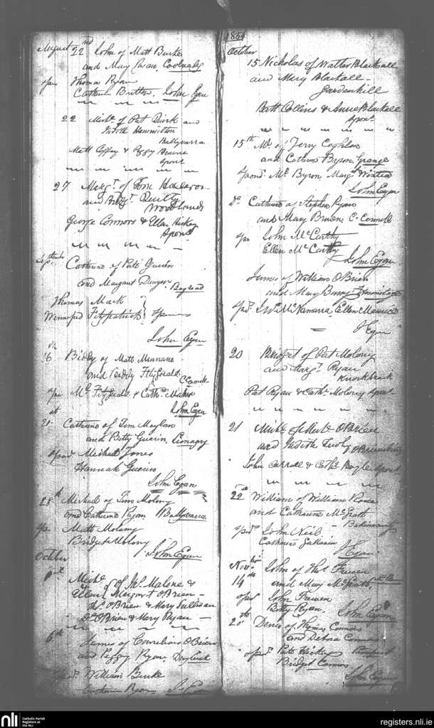 Castleconnell; County of Limerick, Tipperary; Diocese of Killaloe. Baptisms, Aug. 1854 to Nov. 1854