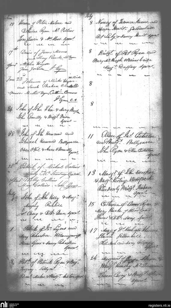 Castleconnell; County of Limerick, Tipperary; Diocese of Killaloe. Baptisms, June 1855 to July 1855
