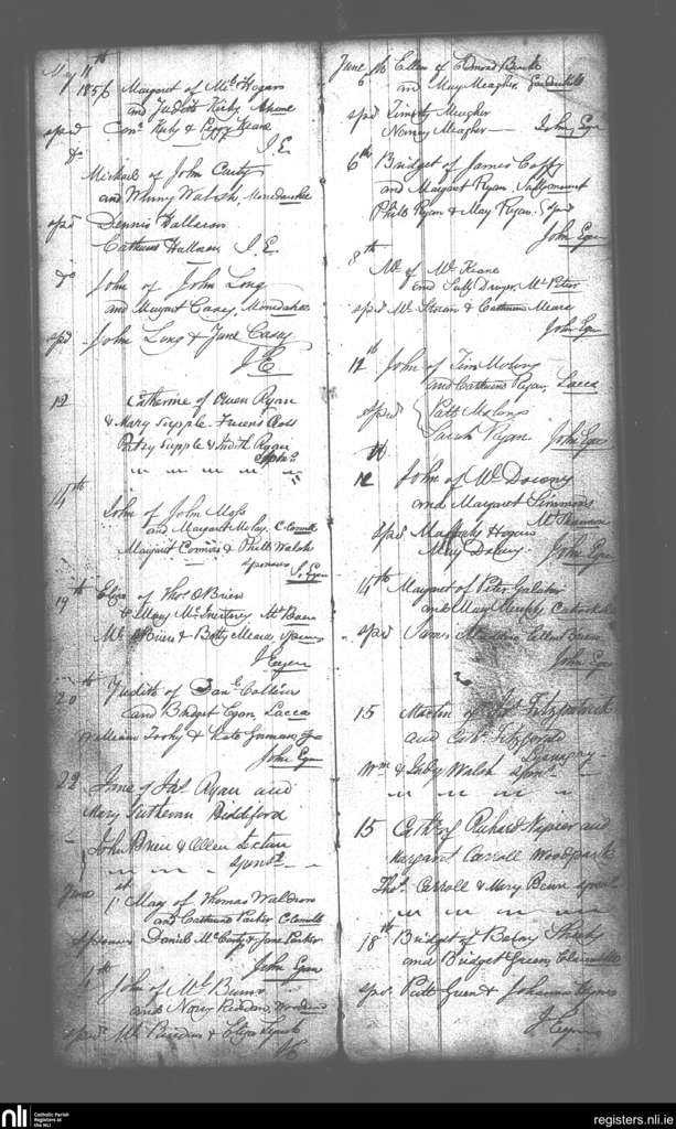 Castleconnell; County of Limerick, Tipperary; Diocese of Killaloe. Baptisms, May 1856 to June 1856