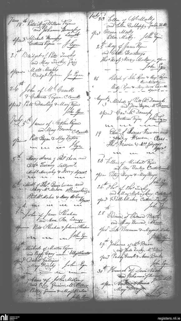 Castleconnell; County of Limerick, Tipperary; Diocese of Killaloe. Baptisms, June 1856 to Aug. 1856