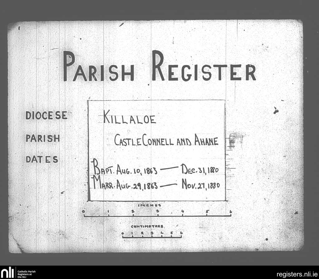 Castleconnell; County of Limerick, Tipperary; Diocese of Killaloe. Baptisms, Marriages