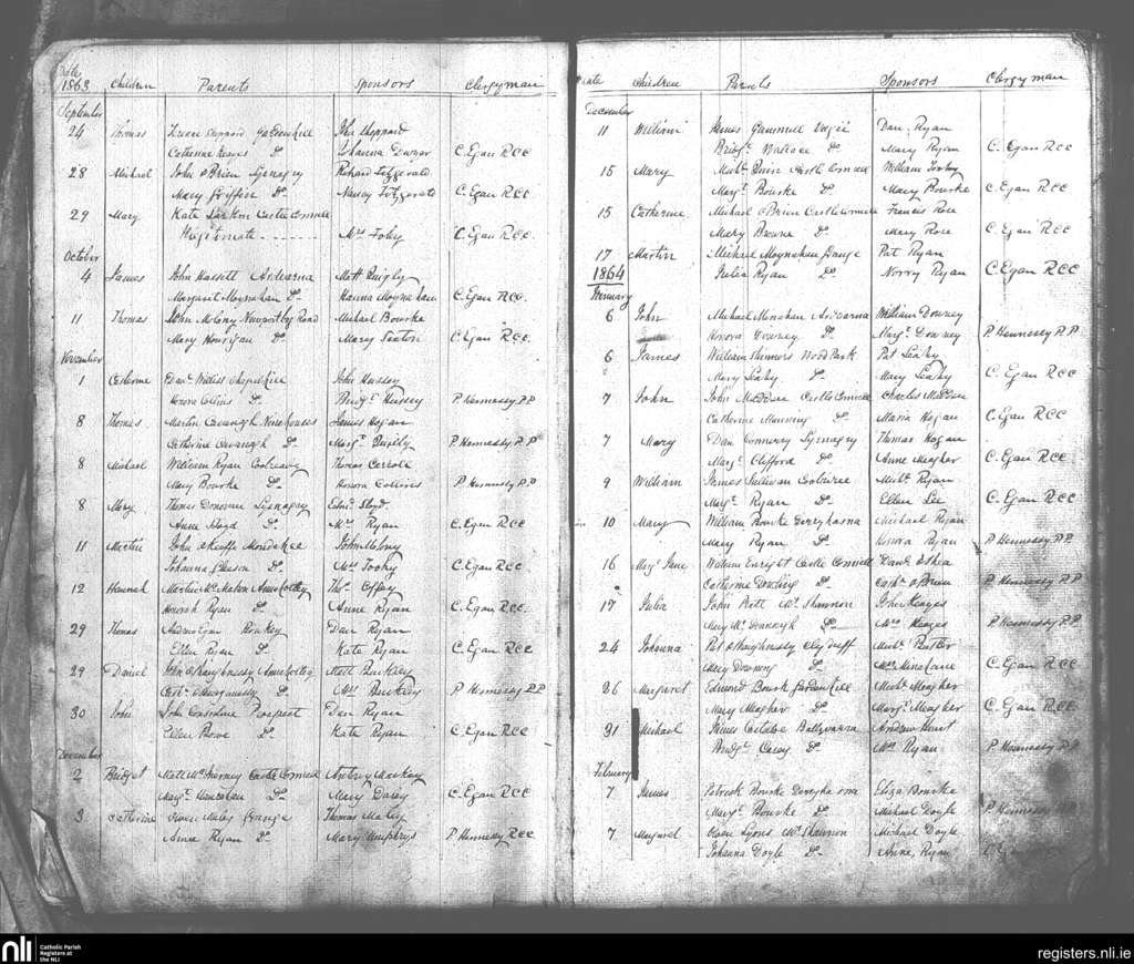 Castleconnell; County of Limerick, Tipperary; Diocese of Killaloe. Baptisms, Sep. 1863 to Feb. 1864
