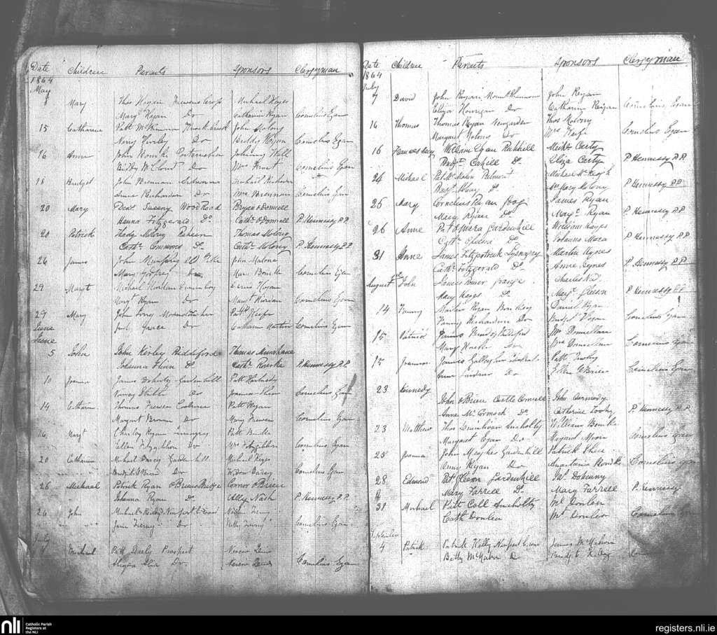 Castleconnell; County of Limerick, Tipperary; Diocese of Killaloe. Baptisms, May 1864 to Sep. 1864