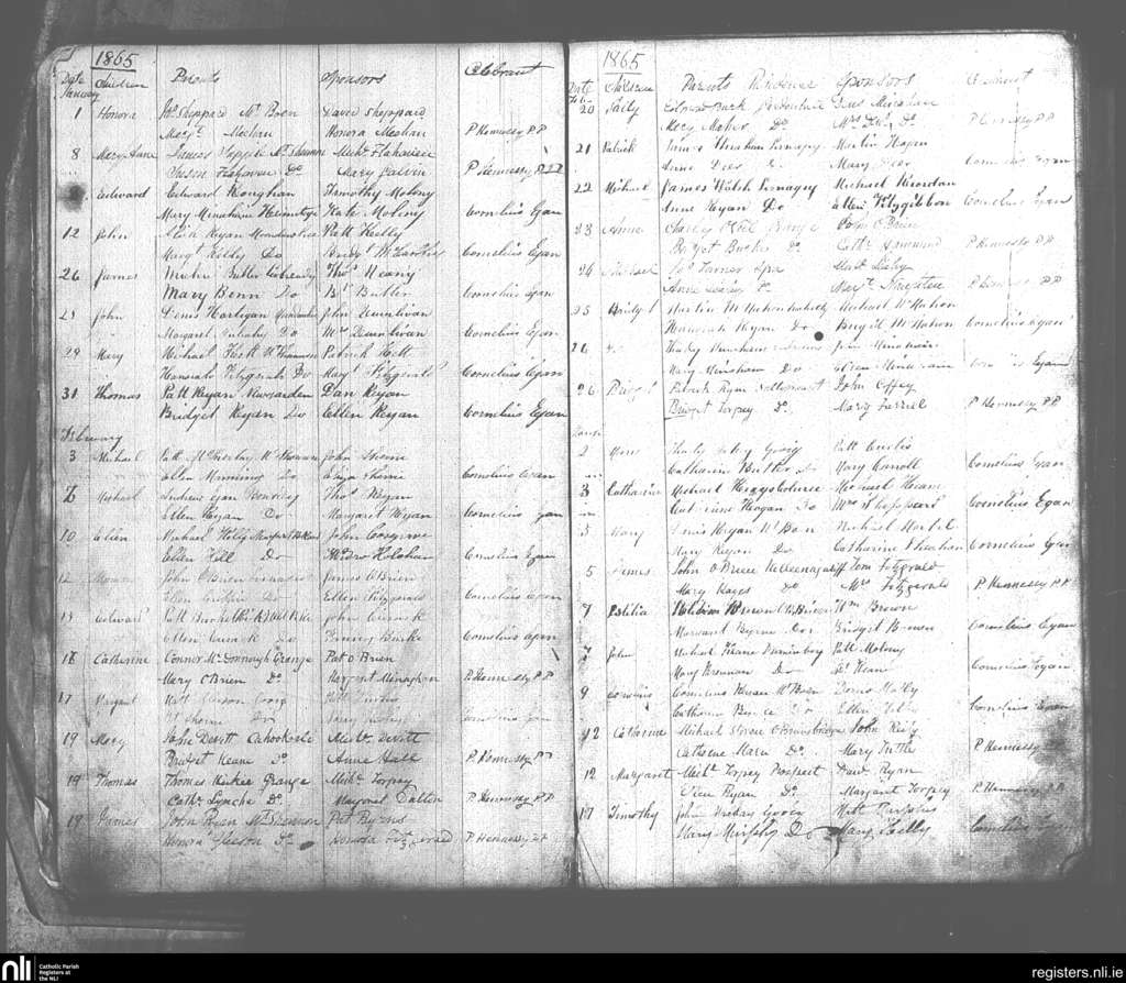 Castleconnell; County of Limerick, Tipperary; Diocese of Killaloe. Baptisms, Jan. 1865 to Mar. 1865